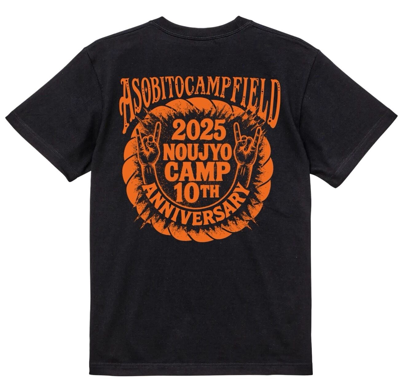 10周年の特別な瞬間を演出する、2025 NOUJYO CAMPオリジナルTシャツ(ブラック)。